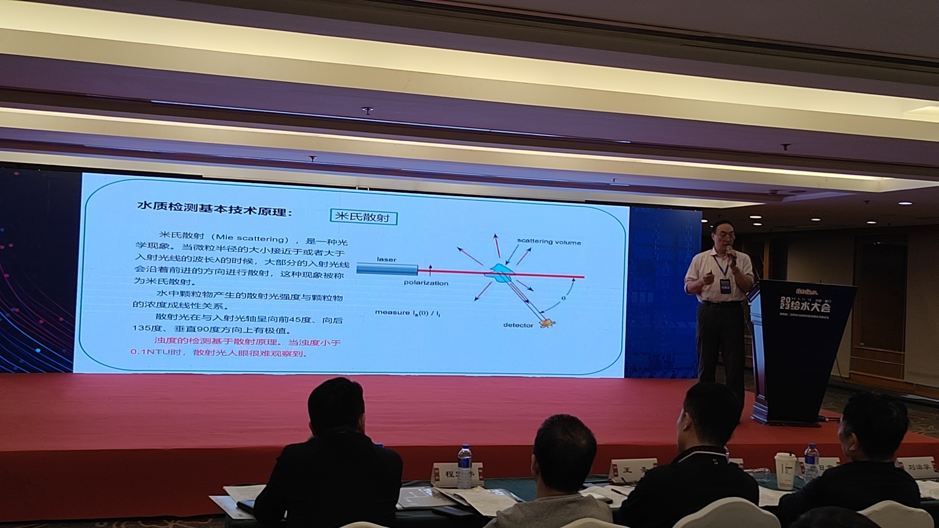 在此次給水大會(huì)上,我司董事長(zhǎng)、國(guó)內(nèi)環(huán)境光學(xué)專家、浙江大學(xué)光電學(xué)院姚軍研究員,同與會(huì)者分享了《二次供水水質(zhì)在線檢測(cè)技術(shù)原理及產(chǎn)品特點(diǎn)比較》的報(bào)告。報(bào)告中介紹了二供水質(zhì)濁度、消毒劑、色度、pH等在線檢測(cè)儀器的主要技術(shù)原理,光學(xué)檢測(cè)技術(shù)在二供水質(zhì)在線檢測(cè)產(chǎn)品中的應(yīng)用,并對(duì)二供在線水質(zhì)檢測(cè)技術(shù)及產(chǎn)品特點(diǎn)進(jìn)行了比較。報(bào)告獲得了與會(huì)者的好評(píng)及關(guān)注。